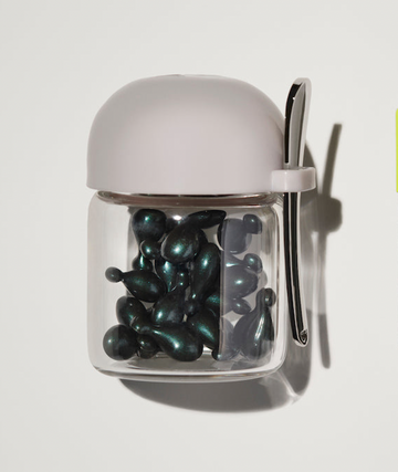 Universal facial serum made from 100% upcycled plant squalane in biodegradable, single-use seaweed capsules. Use for daily lightweight, easily absorbed hydration and support. Packaged in paperboard jar.
